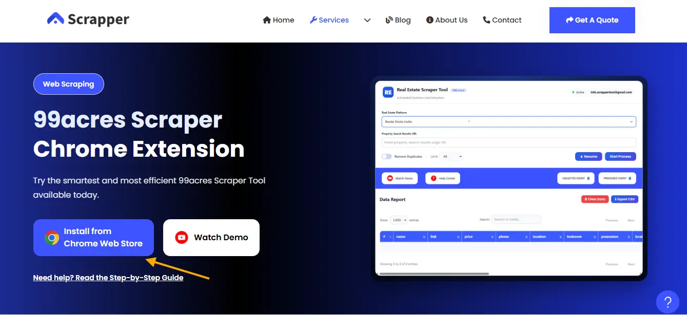 99acres Scraper Tool is a powerful Chrome extension designed to automatically extract real estate listings and property leads from 99acres.com with accuracy and speed.